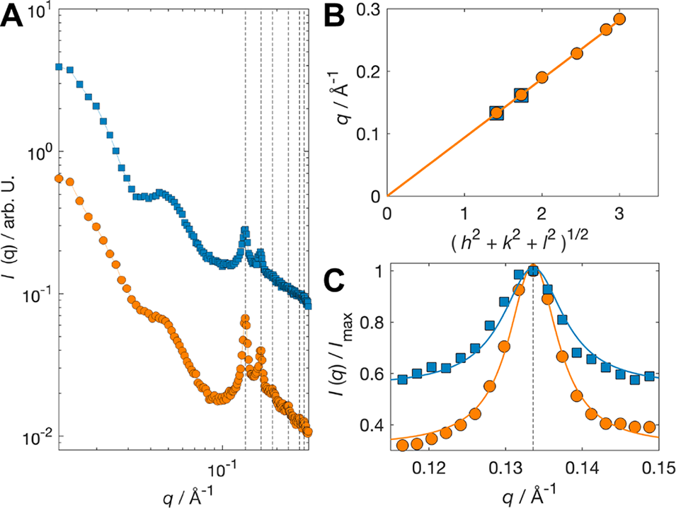 图2. 立方体脂质纳米颗粒的小角 X 射线散射(SAXS)结构表征