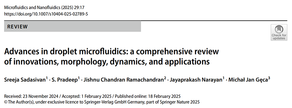 近期,印度韦洛尔科技大学研究人员发表综述,系统总结了液滴微流控技术的最新进展,涵盖液滴生成、形态调控与动力学行为等多个方面。文章重点分析了通道几何结构、流体性质及外部场等因素对液滴形成的影响,探讨了复合液滴的生成机制与动态特性,并指出了该技术在重现性、防聚并和规模化方面面临的挑战与未来发展方向。相关研究成果以“Advances in droplet microfluidics: a comprehensive review of innovations, morphology, dynamics, and applications”为题目,发表于期刊《Microfluidics and Nanofluidics》。