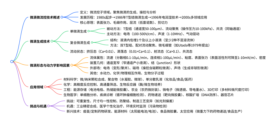 3、此外,还总结了当前面临的控制精度、规模化制备与液滴合并等挑战,并展望了其在个性化医疗、能源存储和空间技术等新兴领域的未来发展。