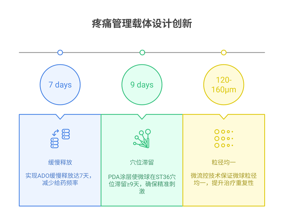 3、载有腺苷的粘性水凝胶微球可以在ST36穴位缓慢释放外源性腺苷,以模拟针灸的镇痛效果。