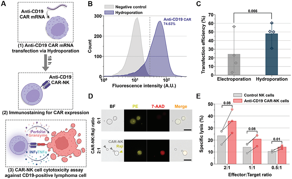 图5. 利用Y型水穿孔器制备抗CD19 CAR-NK细胞