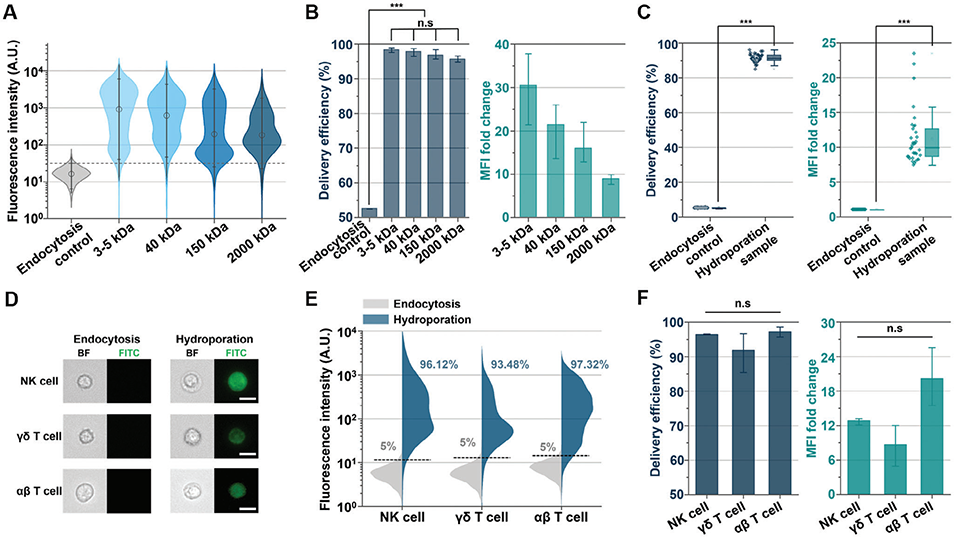 图3. 人原代NK细胞、γδ T细胞及αβ T细胞的细胞内递送特征分析