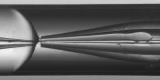 • Occurrence of jetting of the middle phase mixed with inner core droplets: The reason for the jetting of the middle phase is that its flow rate is excessively high, and it is sheared by the outer phase fluid to form a thin liquid streamline. At this time, the flow rate of the middle phase should be appropriately reduced.
