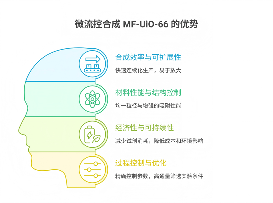 1、本研究提出一种高通量、连续的微流控合成策略,可在数分钟内实现结构均匀的MF-UIO-66的快速、可扩展制备。