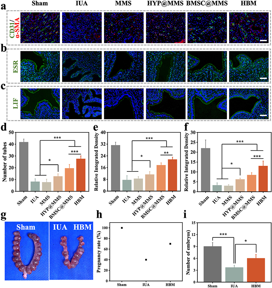 4、在大鼠IUA模型中,HBM显著恢复内膜厚度、增加腺体数量、减少胶原沉积,并改善内膜容受性。转录组分析显示HBM激活了免疫调节与组织修复相关通路。