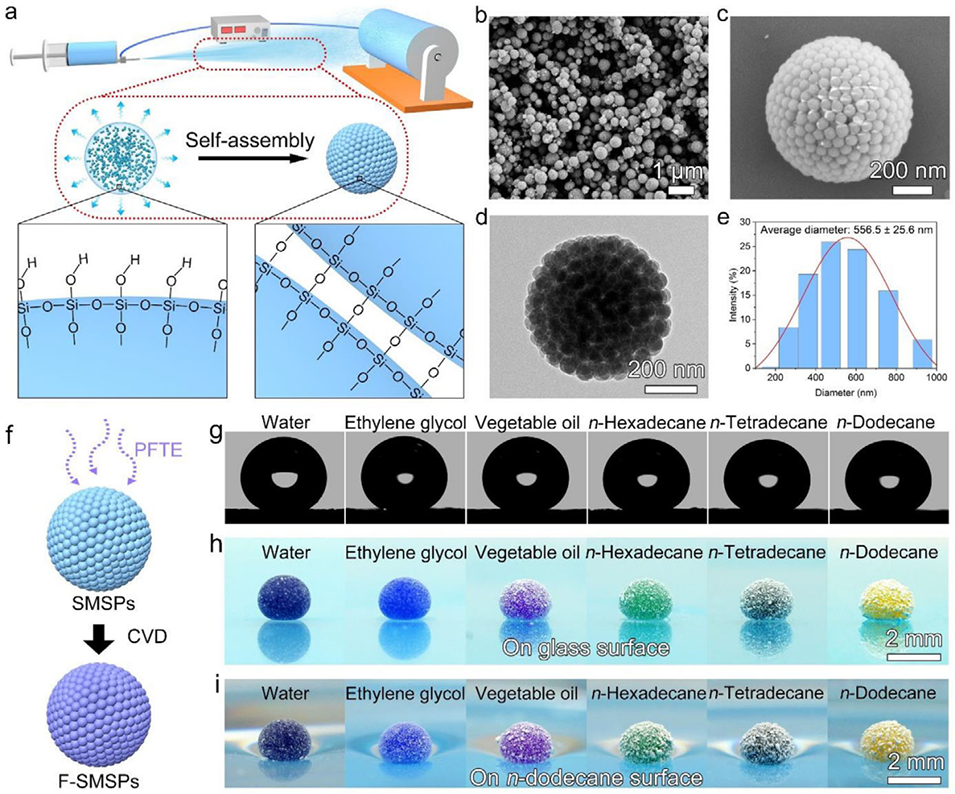 2、HMSPs由胶体二氧化硅溶胶直接制备,无需额外溶剂或表面活性剂,具备亚微米尺寸与分级孔隙结构,赋予其优异的液体排斥性与机械稳定性。