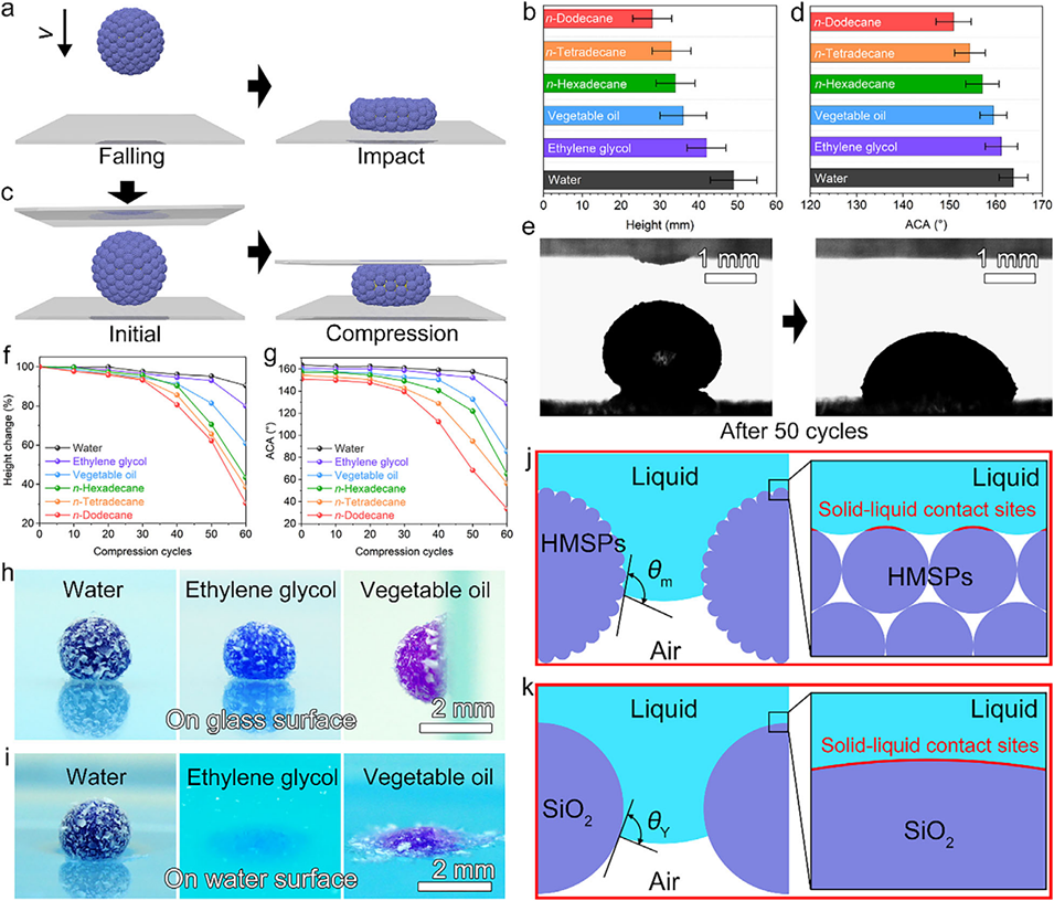 1、本研究通过可扩展且环境友好的电喷雾策略,制备了具有分级微结构的超粒子(HMSPs),用于构建结构稳定、多功能的液体弹珠(LM)。