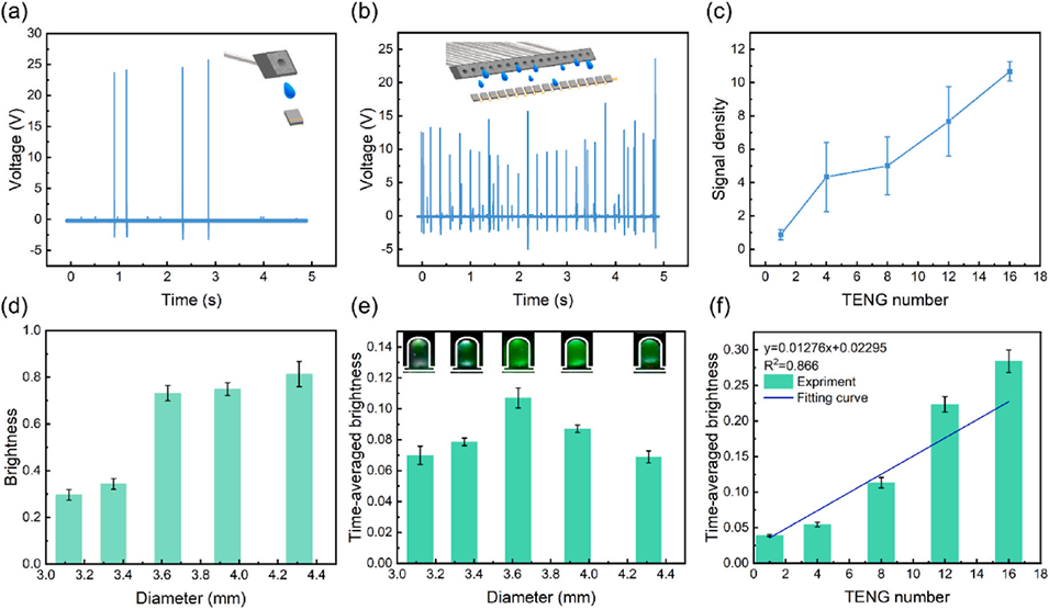 图4:多通道微流控工程化液滴摩擦纳米发电机性能