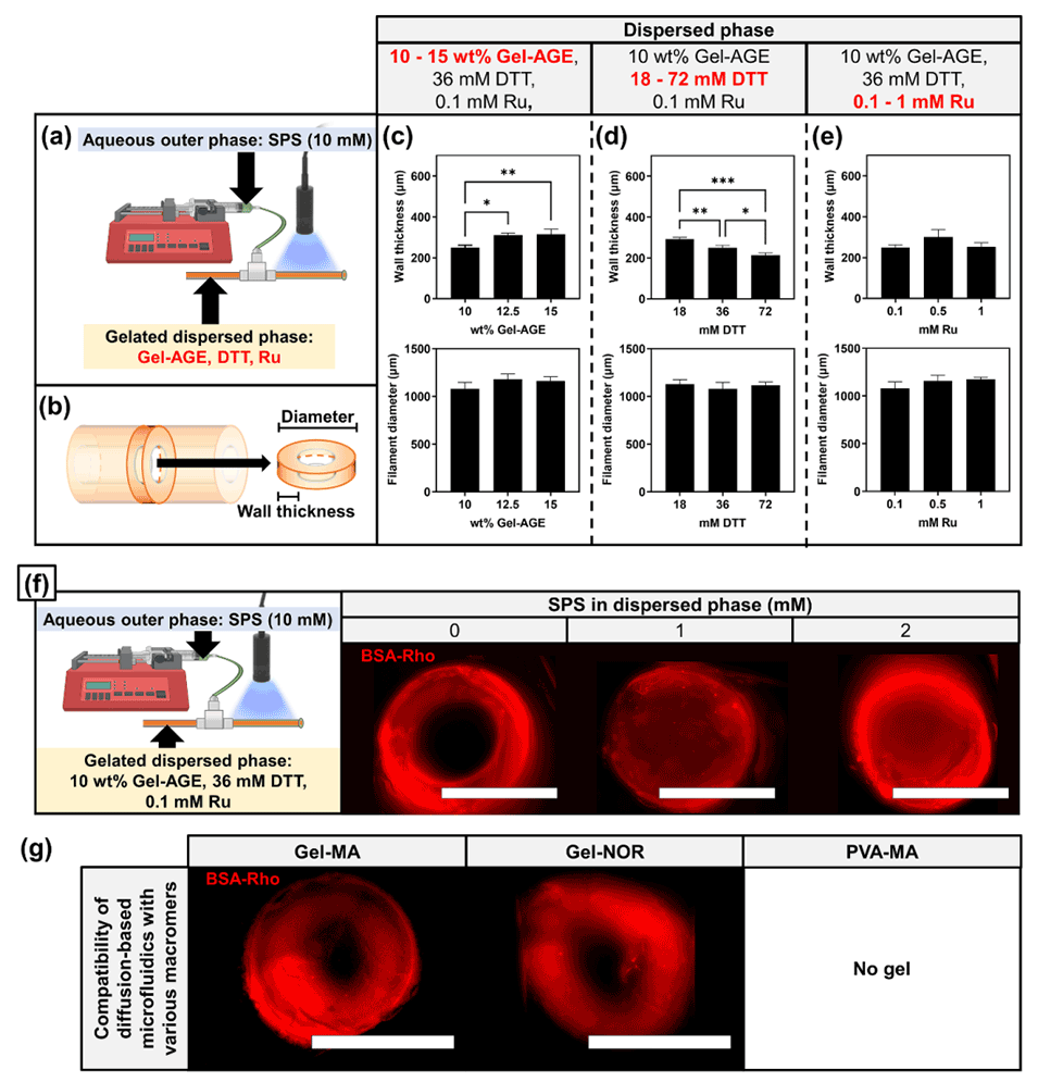 图3.通过基于扩散的微流体技术制备的水凝胶丝横截面的力学特性。
