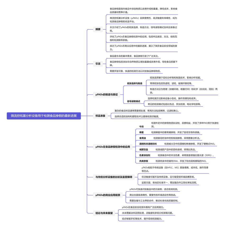3、讨论了过去三年内的重要研究,强调了μPADs在食品掺假检测中的商业应用潜力。