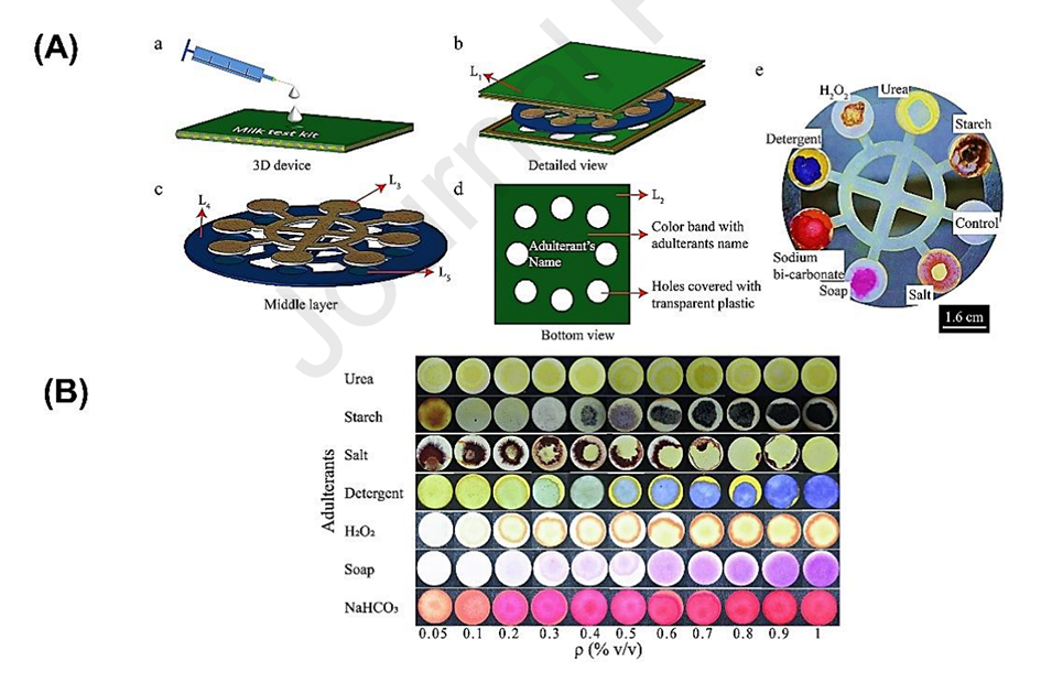 3、μPADs在检测牛奶、蜂蜜、食用油、酒精和非酒精饮料、减肥产品、食品着色剂和肉类等多种食品样品中的掺假物方面显示出广泛的应用潜力。