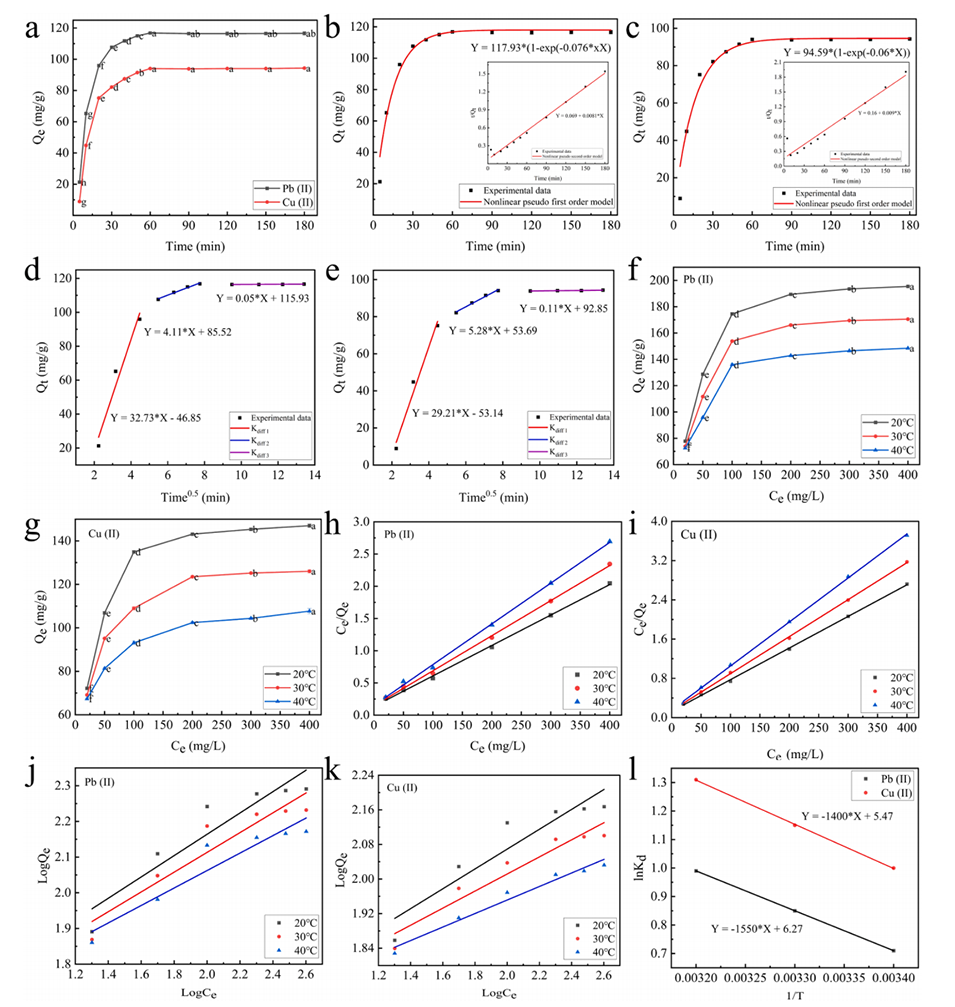 协同配位效应:羧基和氨基的协同作用能够为Pb(II)和Cu(II)提供多个配位位点,增强了金属离子与水凝胶之间的结合力,从而进一步提高吸附能力和结合稳定性。