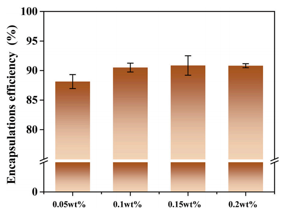 图6.不同质量分数的纳米壳聚糖对包封效率的影响。