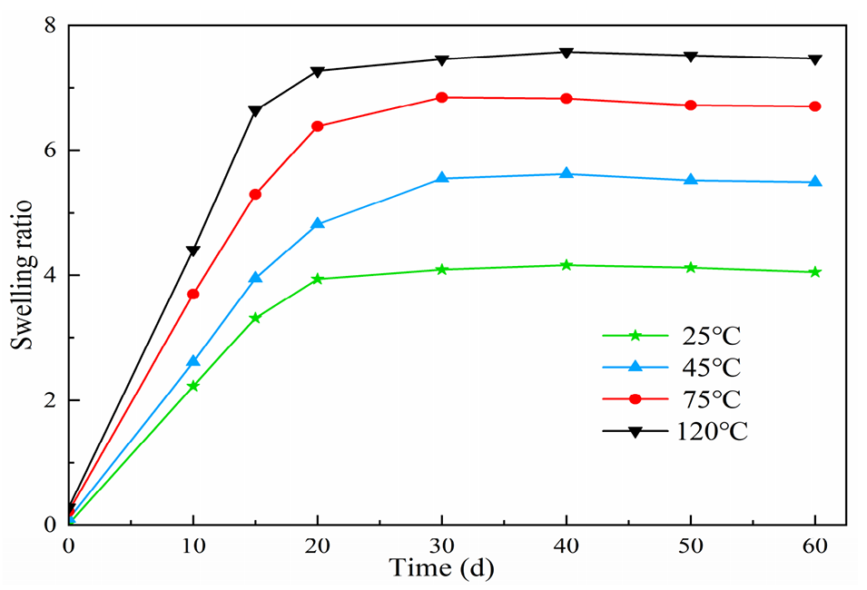 图13.不同温度对聚合物微球膨胀性能的影响。
