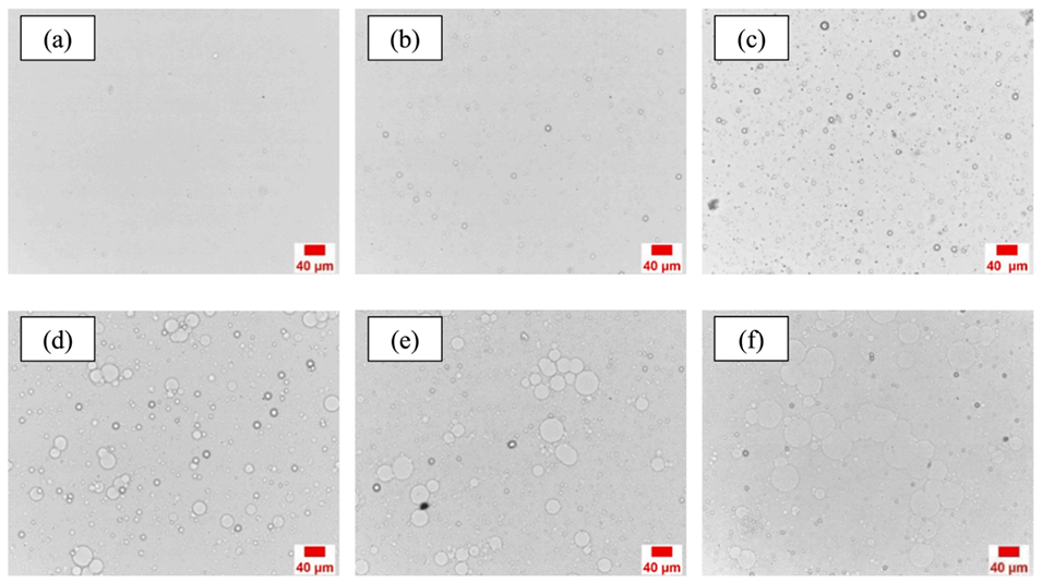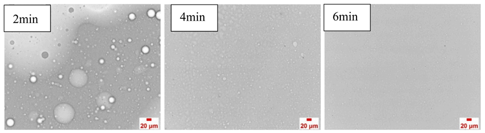 图6.不同乳化时间的乳液的显微照片。
