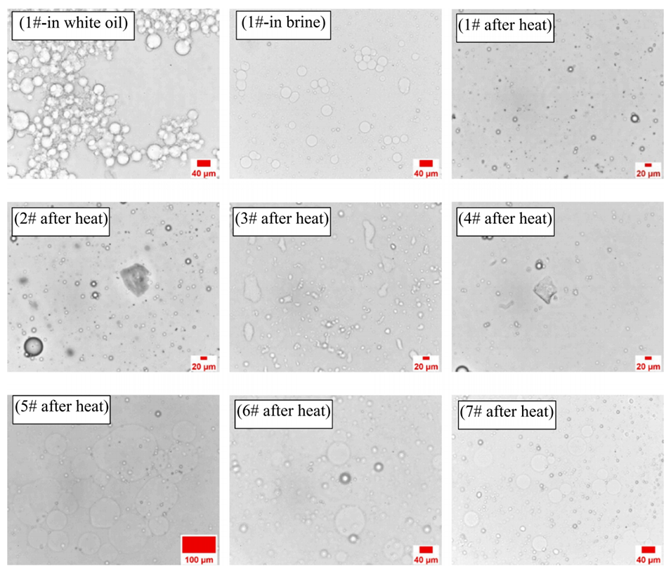 2、通过优化乳化剪切时间、单体浓度、DMA与NaSS质量比以及DVB用量,成功制备出可在150°C下于不同盐水(包括海水)中保持45天长期稳定性的PNS微球。其耐温耐盐性能显著优于传统聚丙烯酰胺微球。