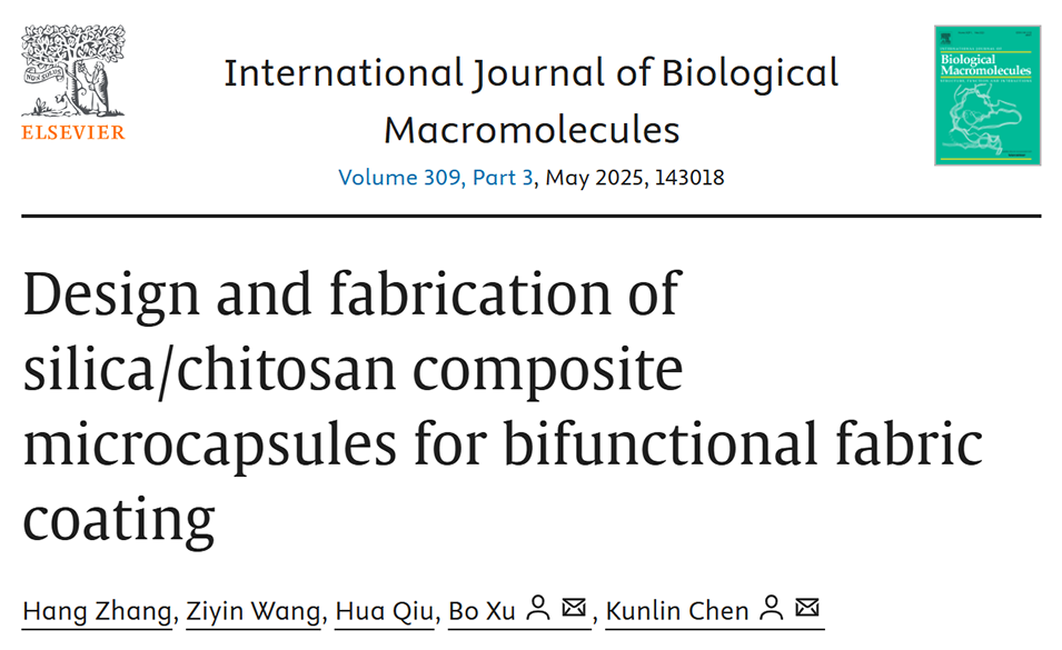 近期,江南大学纺织科学与工程学院陈坤林副教授、许波副教授等研究人员成功开发了一种基于壳聚糖和二氧化硅的复合微胶囊材料,用于赋予织物抗菌和紫外线防护的双重功能。该研究通过单凝聚法制备了以天然薄荷精油为芯材、壳聚糖和改性二氧化硅为壁材的草莓状微胶囊,并将其应用于织物涂层,显著提升了织物的多功能性和耐用性。相关研究以“Design and fabrication of silica/chitosan composite microcapsules for bifunctional fabric coating”为题目,发表在期刊《International Journal of Biological Macromolecules》上。