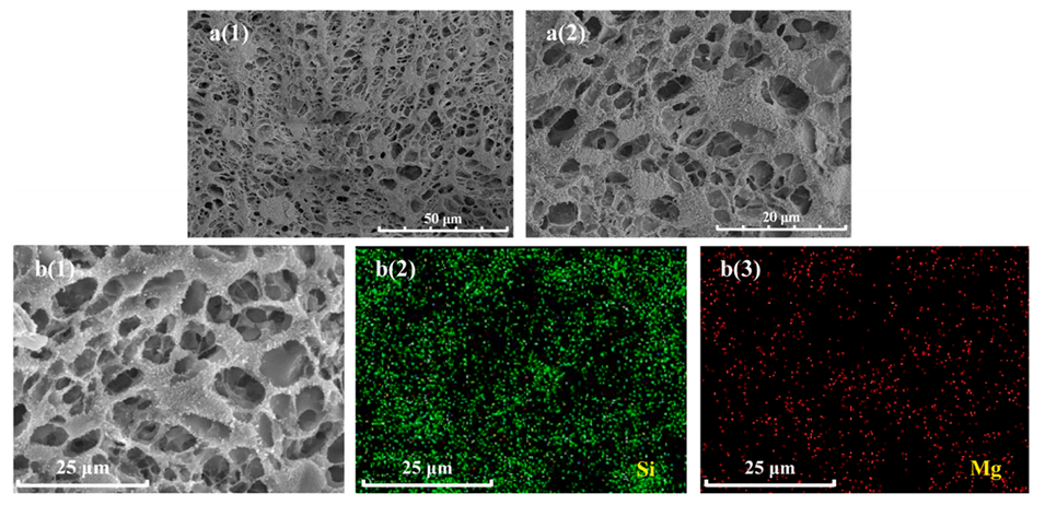 图11.环境响应型智能水凝胶的微观结构(a:SEM图像;b:EDS分层图像)。