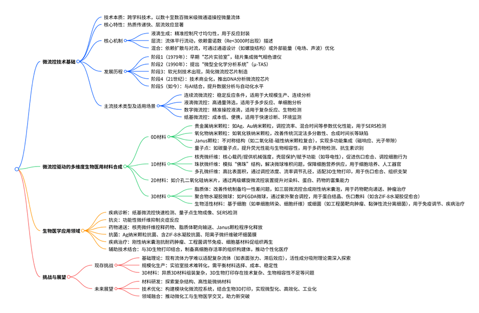 2、系统总结了该技术驱动下零维至三维微纳材料的合成,重点探讨了微流控在材料结构设计与性能调控方面的优势。
