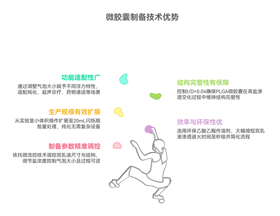 7、未来可通过降低微胶囊核心盐浓度,使气泡在生理条件下保持稳定,还可探索包裹其他气体用于治疗性气体递送。