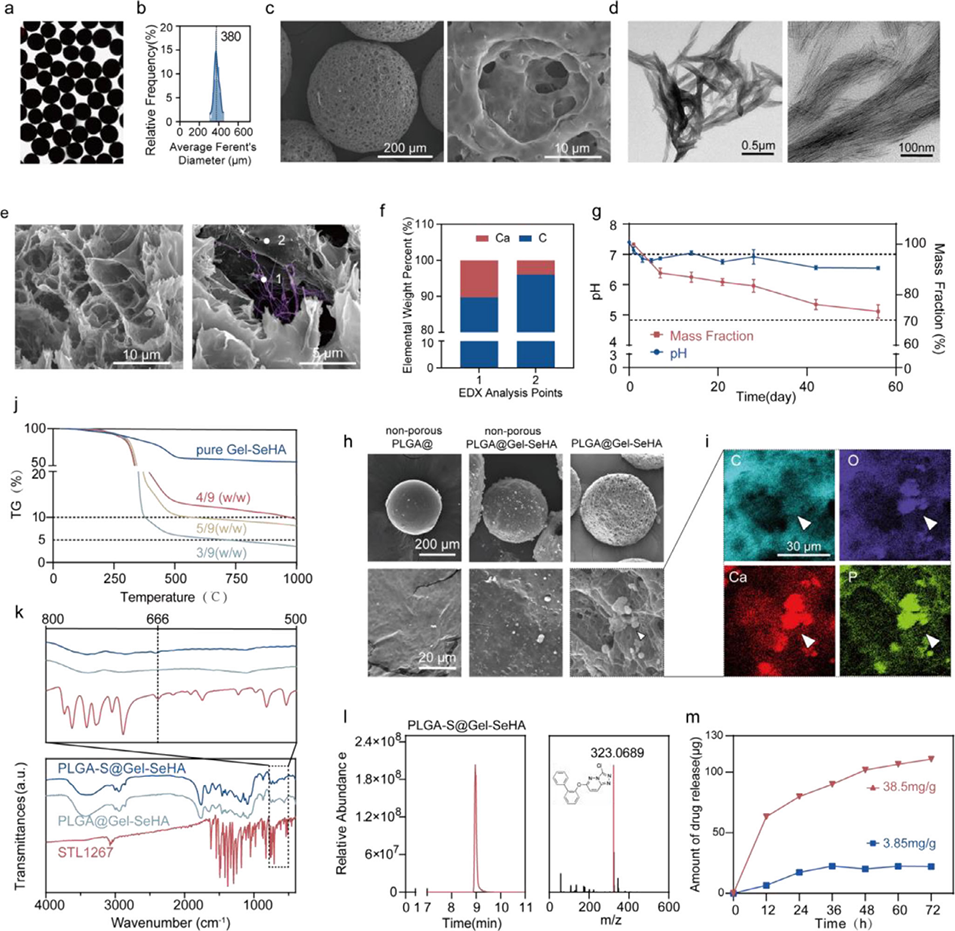 图2:PLGA-S@Gel-SeHA微球的表征结果