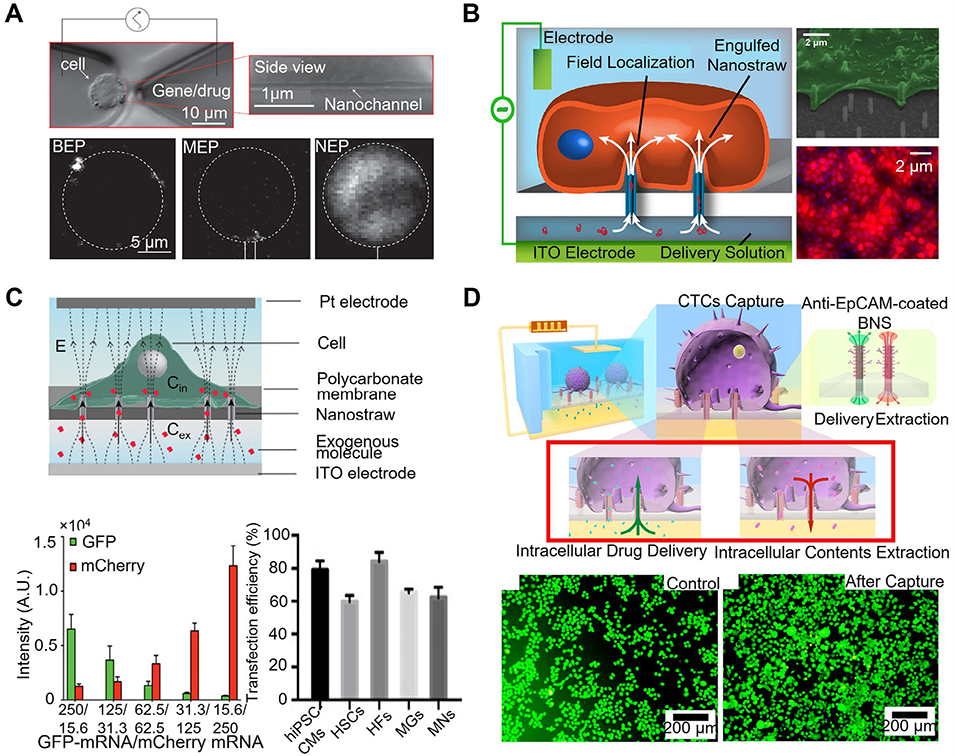 图9:结合纳米孔电穿孔的微流控胞内递送平台示意图