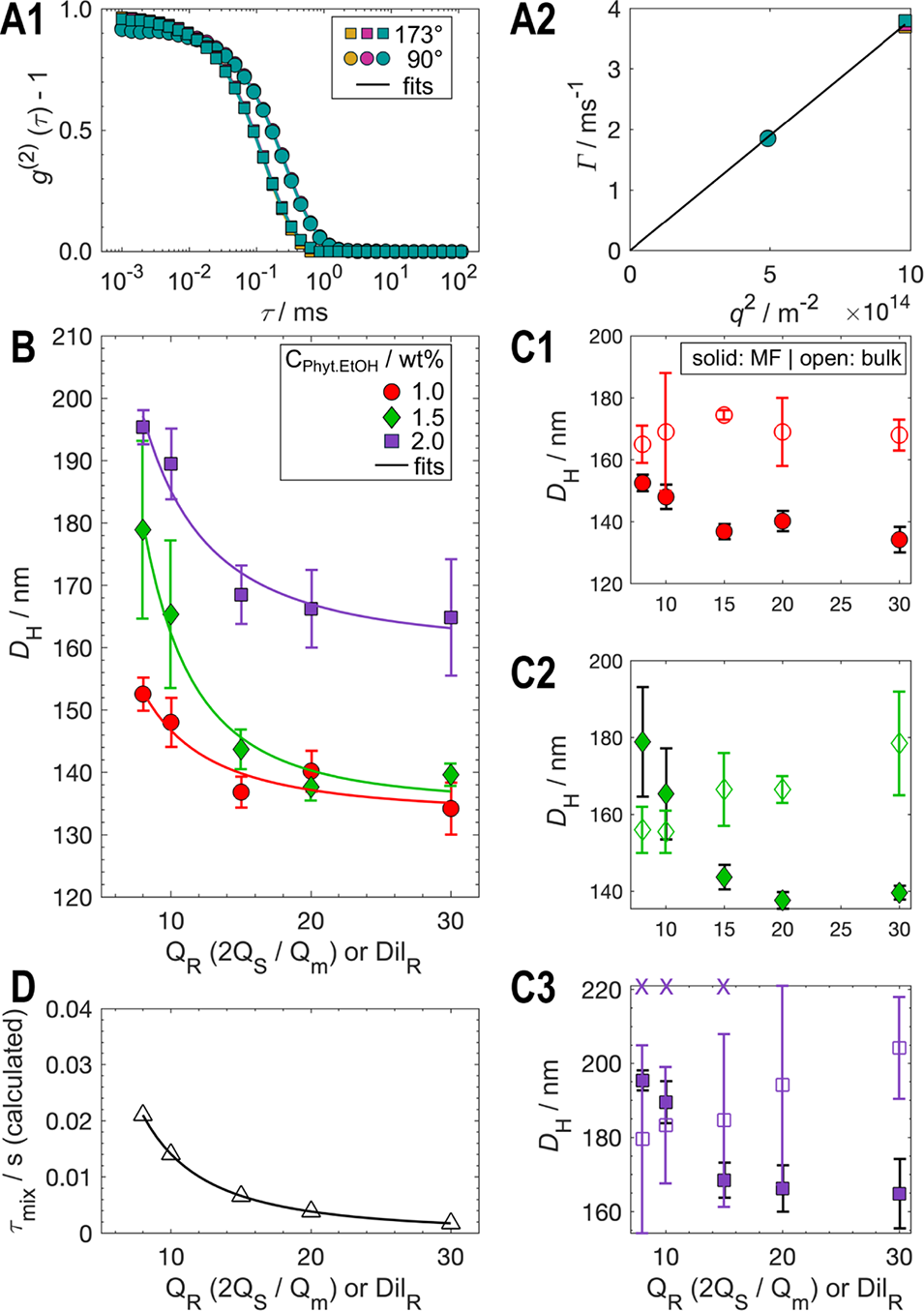 图4. 立方体脂质纳米颗粒粒径随流速比(QR)变化的动态光散射(DLS)表征及建模